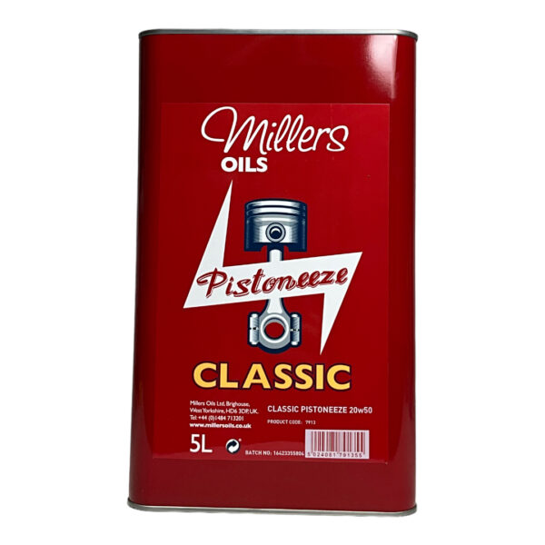 Classic Pistoneeze 20w50 is a moderate detergent premium SAE 20w50 multigrade mineral engine oil. High quality solvent refined base oils with latest technology performance additives and shear stable viscosity index improver. It is specifically engineered for classic cars incorporating a modern filtration systems. It is formulated with ZDDP (zinc/phosphorus).