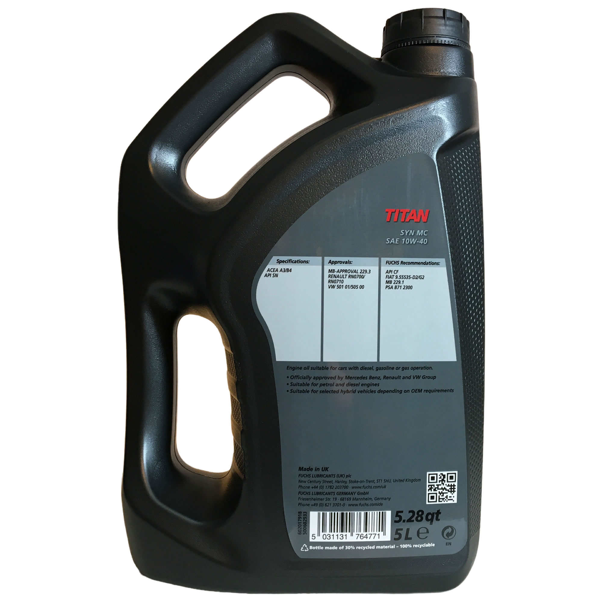 - 5 Litres of Fuchs Titan SYN MC 10W-40 Semi Synthetic Engine Oil